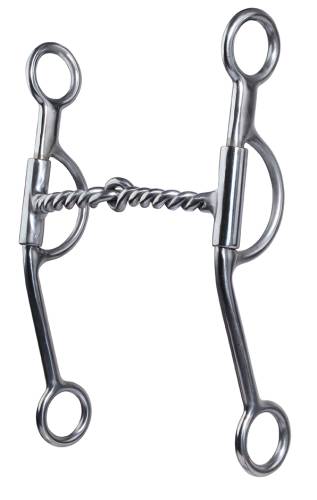 The two-piece twisted wire mouthpiece is slightly more aggressive than a smooth mouthpiece, which demands more response and respect from the horse.